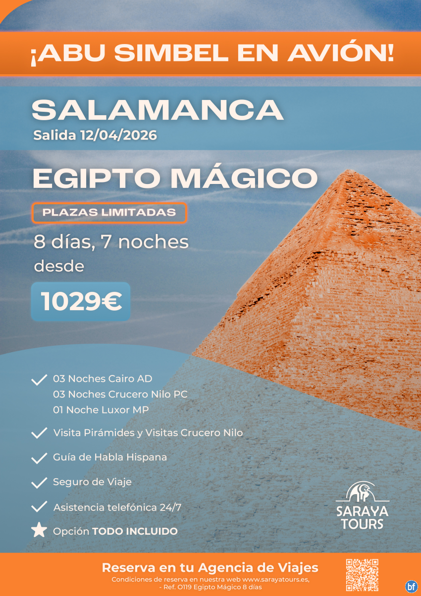 Exclusivo! Egipto Mágico con Abu Simbel en Avión Salida Salamanca 12/04/26 Plazas Limitadas