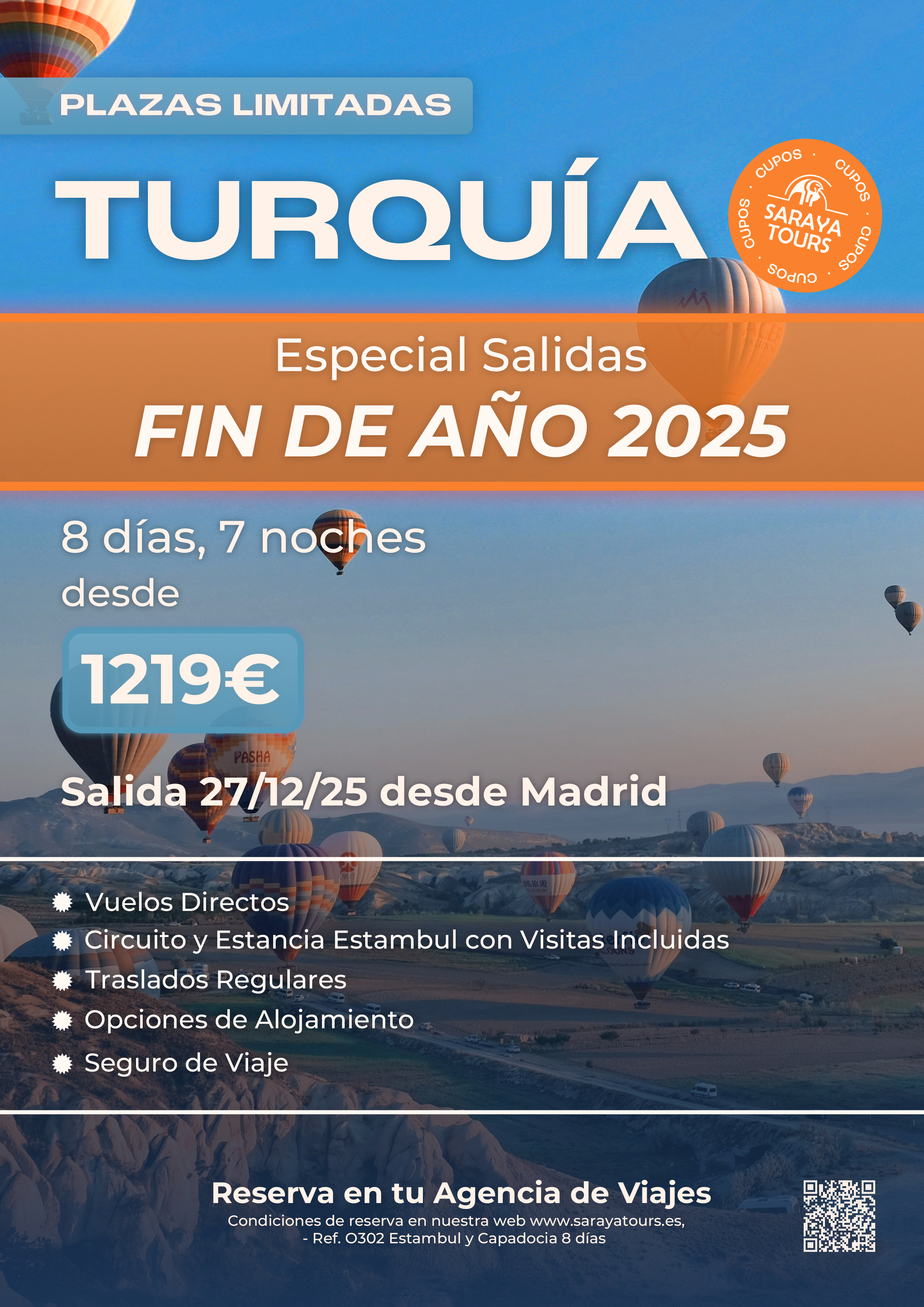 Especial Salidas Fin de año 2025 TURQUÍA 8 días. Vuelos directos. Salida 27/12/25.