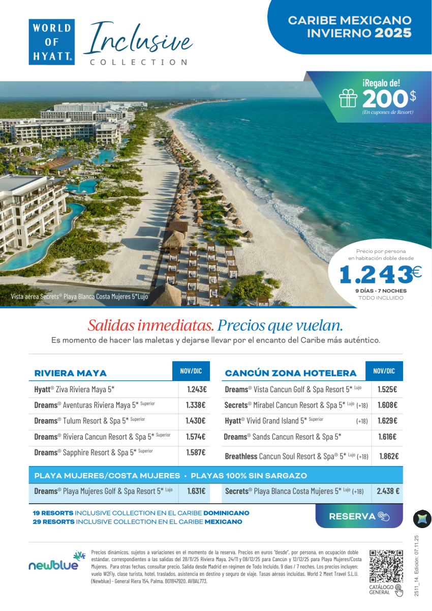 Salidas inmediatas. Riv. Maya + Cancún + Playa Mujeres. Desde 1.243€