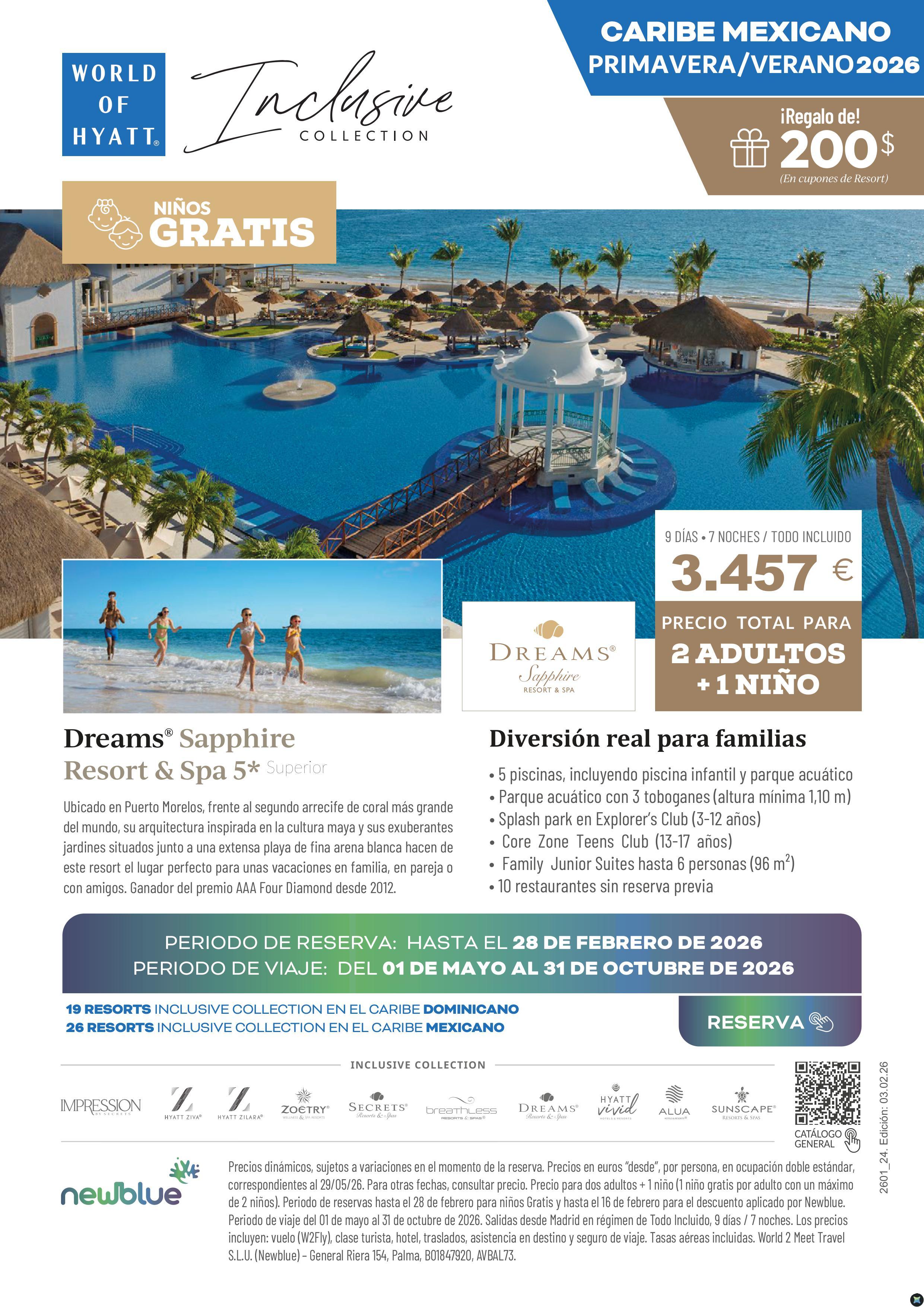 Niños GRATIS Car. Mex - Dreams Sapphire - 2 adultos + 1 niño: 3.457€ - 7N/9Dias Todo Incluido y vuelo directo