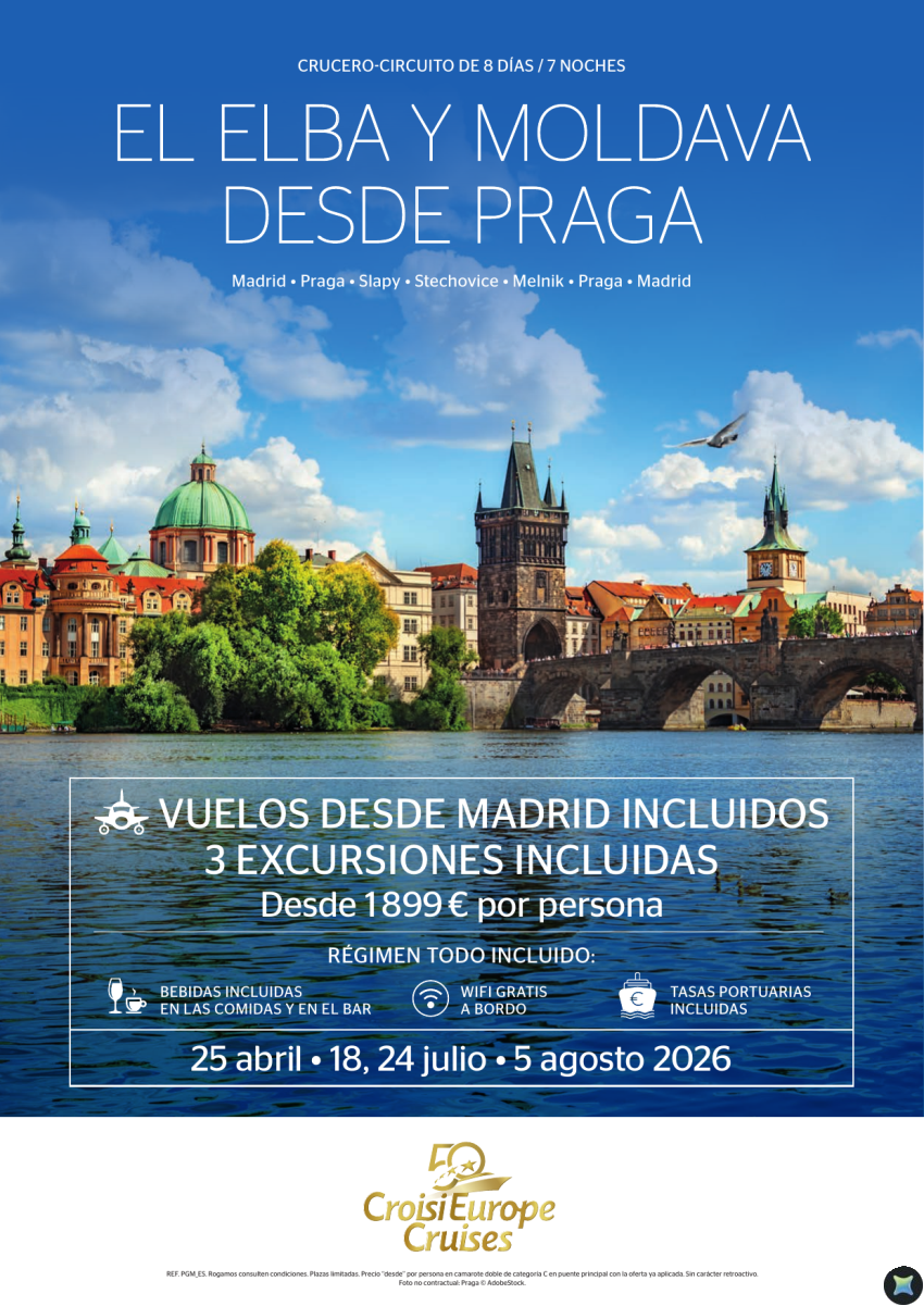 Vuelo INCLUIDO desde Madrid - crucero por el Elba y Moldava desde Praga - 8 días - Todo Incluido - jul y ago